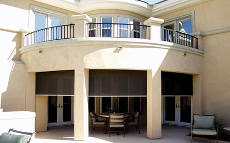 Roll down porch shades, also known as exterior retractable shades, are an extremely effective option. They can block out up to 98% of the sun’s rays and can be mounted on any window or patio.